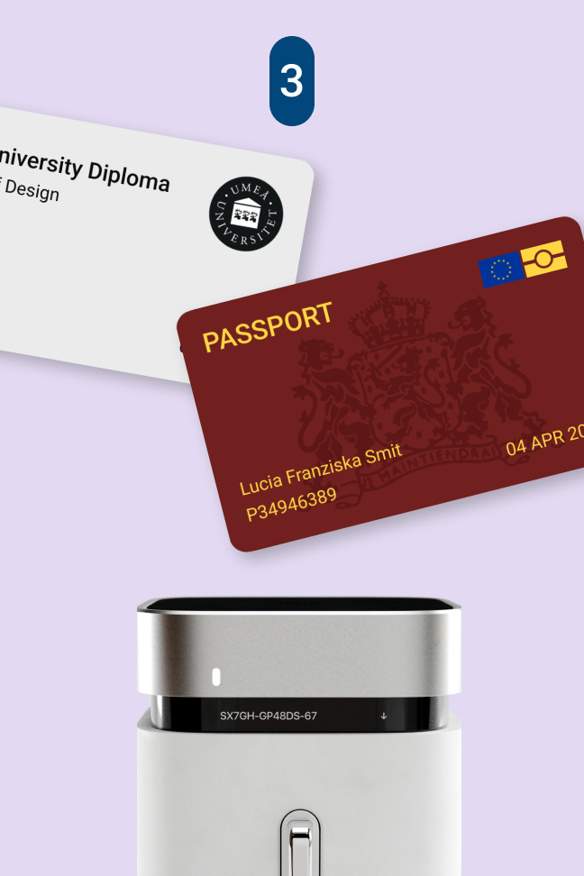 The Lock acts as a tangible key to your data. Access is only granted when you are the verified owner and hold the device in your hand. It is designed for daily life; it fits in every pocket or on a keychain. For documents requiring even greater protection, the Vault offers a tamper-proof, home-based storage solution.